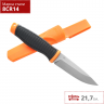 Модель имеет разные варианты цвета: чёрный, голубой, зелёный и оранжевый. Практичные ножны разных цветов служат для хранения и переноса этого ножа, сохраняя его в рабочем состоянии. Инструмент крепкий и выносливый – подходит для обтёсывания веток, перерезания верёвок, им можно без труда разрезать коробку или выполнить иное действие. Нож удобно ложится в руку, комфортен при использовании, им достаточно легко будет интенсивно работать на практике. Защищён от износа, коррозии, рассчитан на длительное применение.